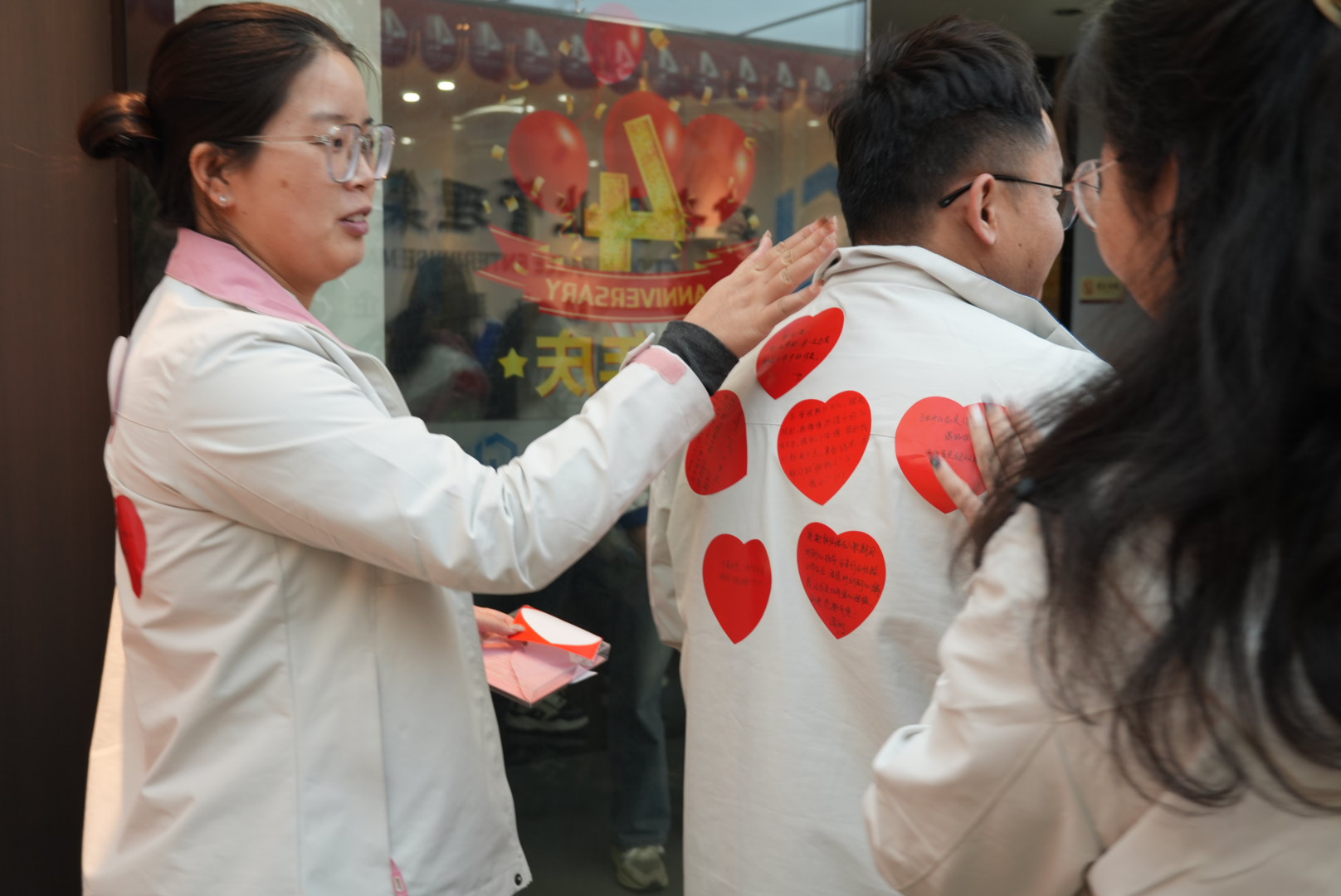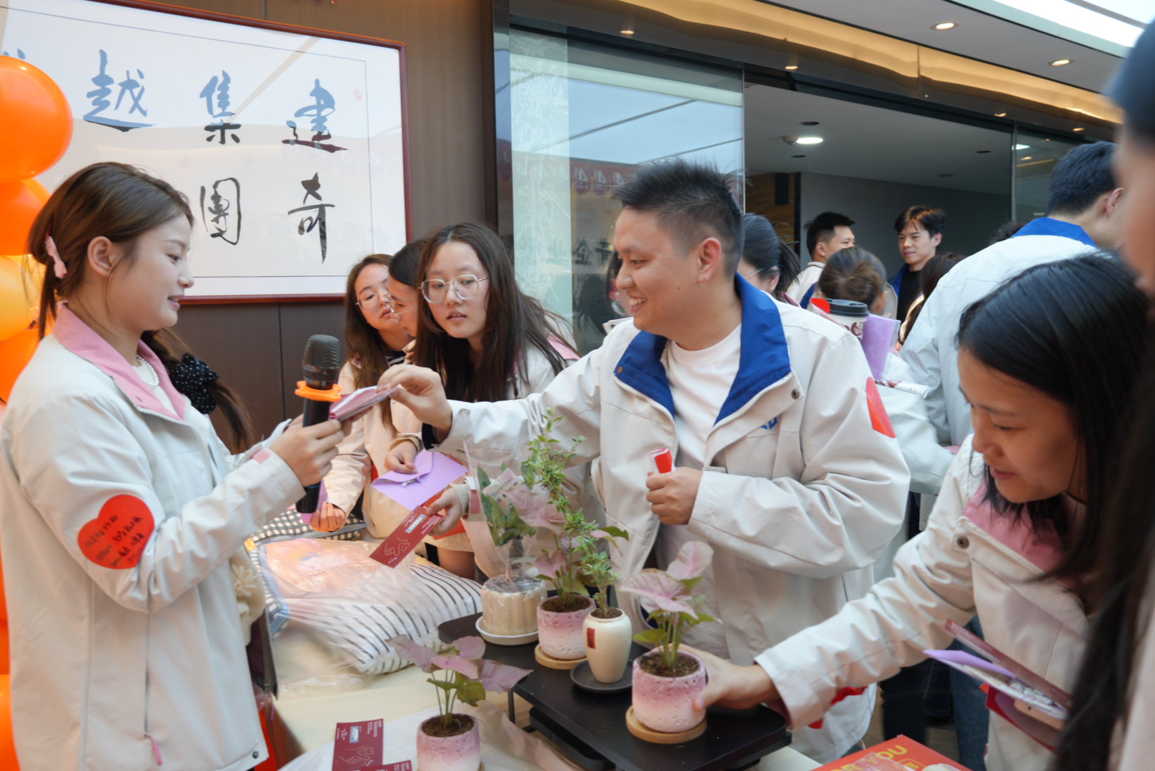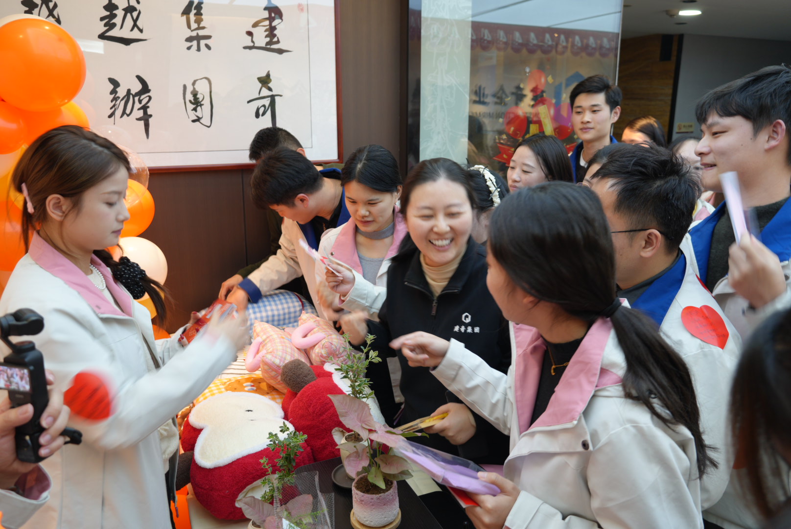 首个“爱心贴纸”环节,瞬间点燃了全场的热情。每位伙伴都领到了专属的爱心贴纸,笔尖在纸上轻轻滑动,将平日里藏在心底的赞赏一一写下——是“并肩作战时的靠谱”,是“细节处的贴心”,是“随手帮忙的温暖”。随后,大家转身为同事贴上这份专属认可,指尖的温度伴着暖心的文字,成了最特别的礼物。