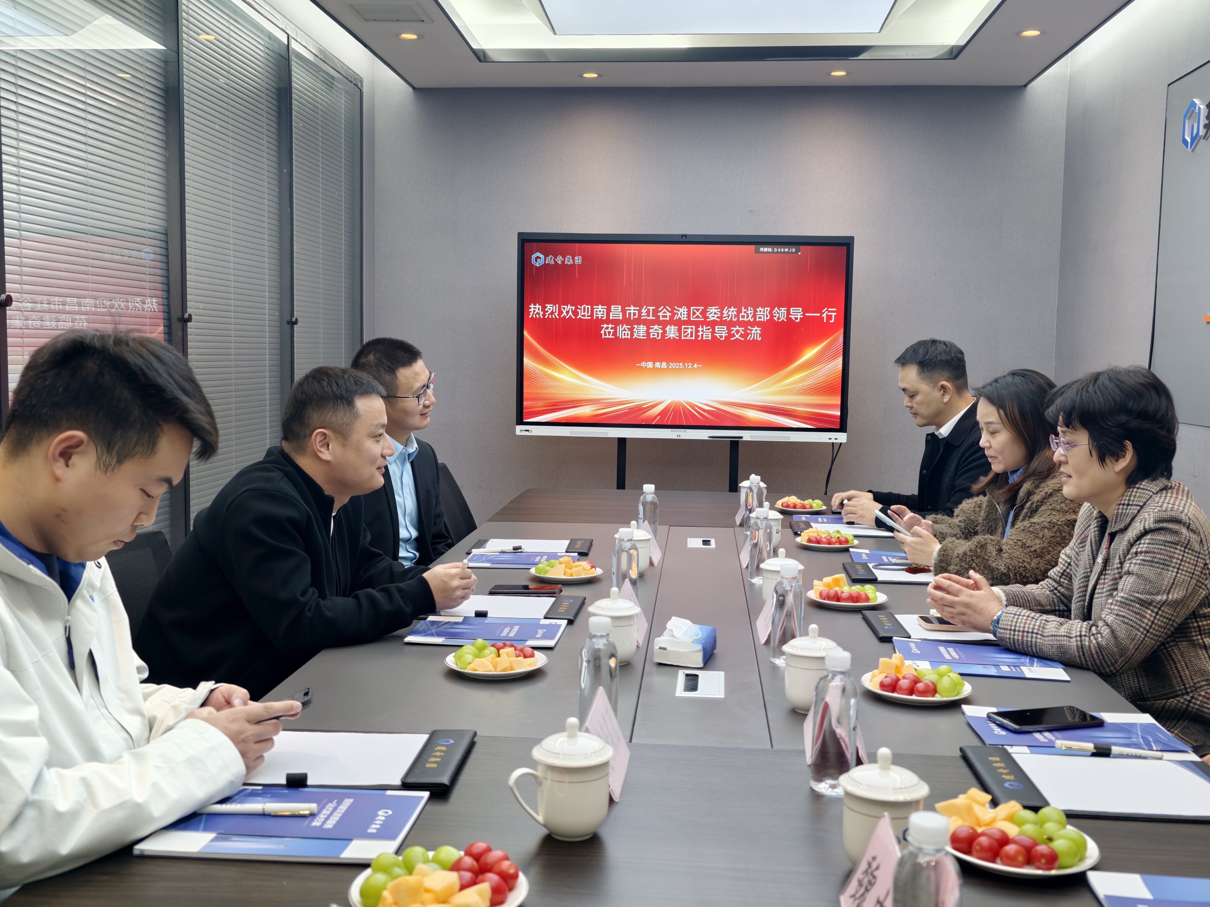 2025年12月4日下午,红谷滩区委统战部副部长、工商联党组书记孙圆圆,区委统战部副部长周则河、区新的社会阶层人士联谊会(简称“区新联会”)执行会长魏忠、监事长陆雅嵋、秘书长施继军一行莅临集团走访指导,建奇集团董事长吴东携财务总监曾小伟、商务部经理邹秀涛热情接待,双方围绕企业发展现状、行业趋势及政企协同赋能等议题展开深入座谈。
