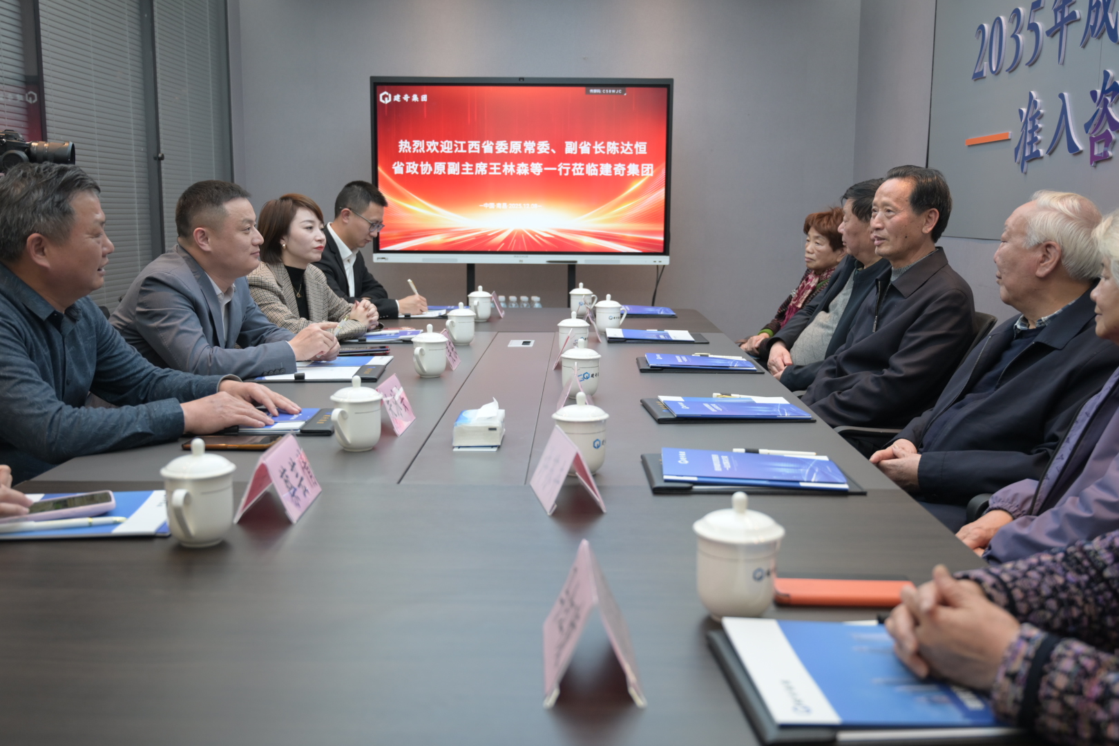 2025年12月8日下午,建奇集团迎来江西省委原常委、副省长陈达恒,省政协原副主席王林森,省纪委原副书记、原省监察厅厅长许苏卉,省民政厅原巡视员郭爱华,江西省红色文化研究会执行会长、原省农业厅副厅长张忠平,玉泉岛合唱团副团长马红绫一行莅临集团考察指导。建奇集团董事长兼总经理吴东携执行董事长周考、财务总监曾小伟等核心成员全程陪同,并参加了座谈会。